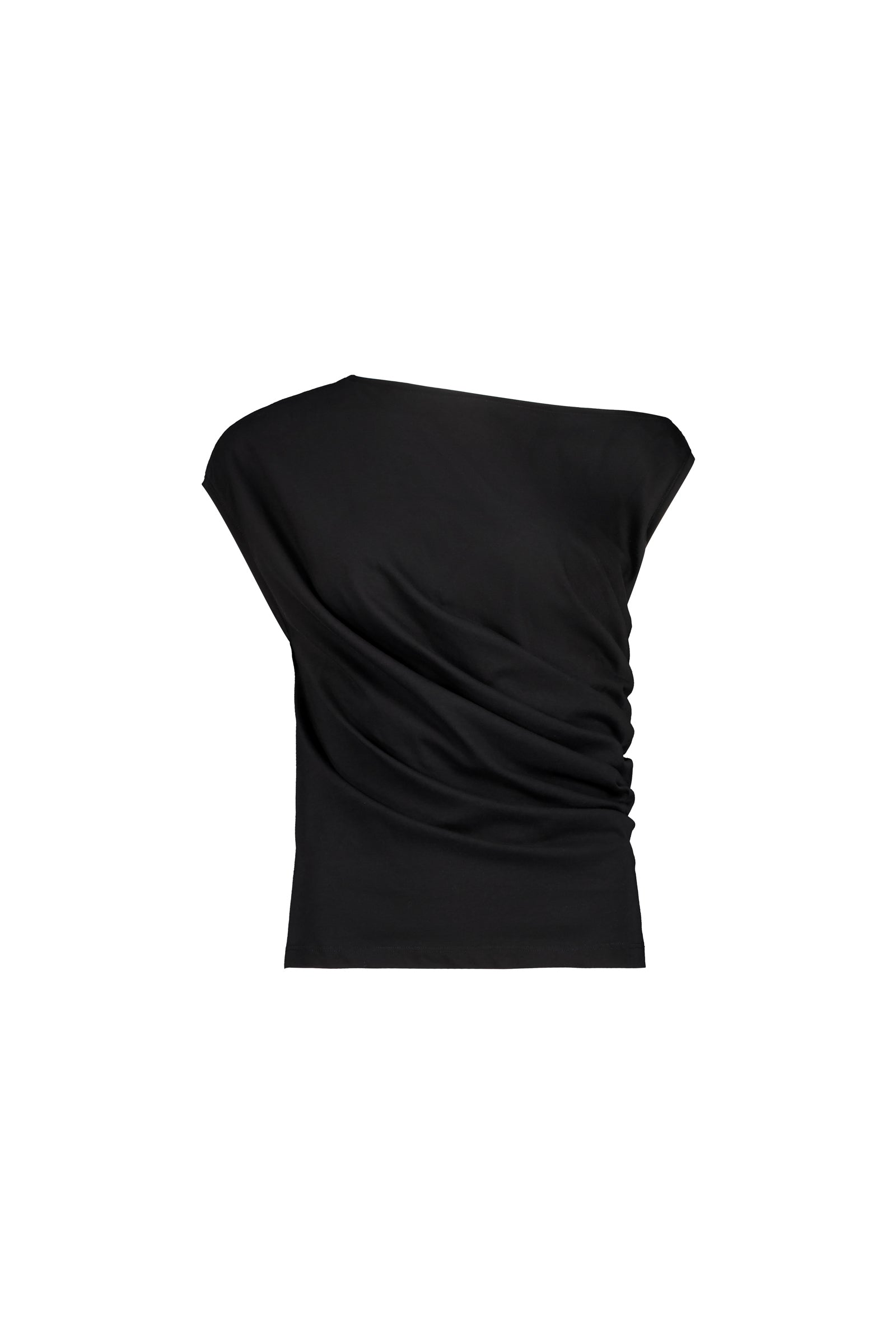 Utilising contemporary pattern-making, the Asymmetric Top features an elegant, flattering diagonal drape. It has a standard fit with a wide, off-the-shoulder neckline and is crafted from lightweight organic cotton jersey,