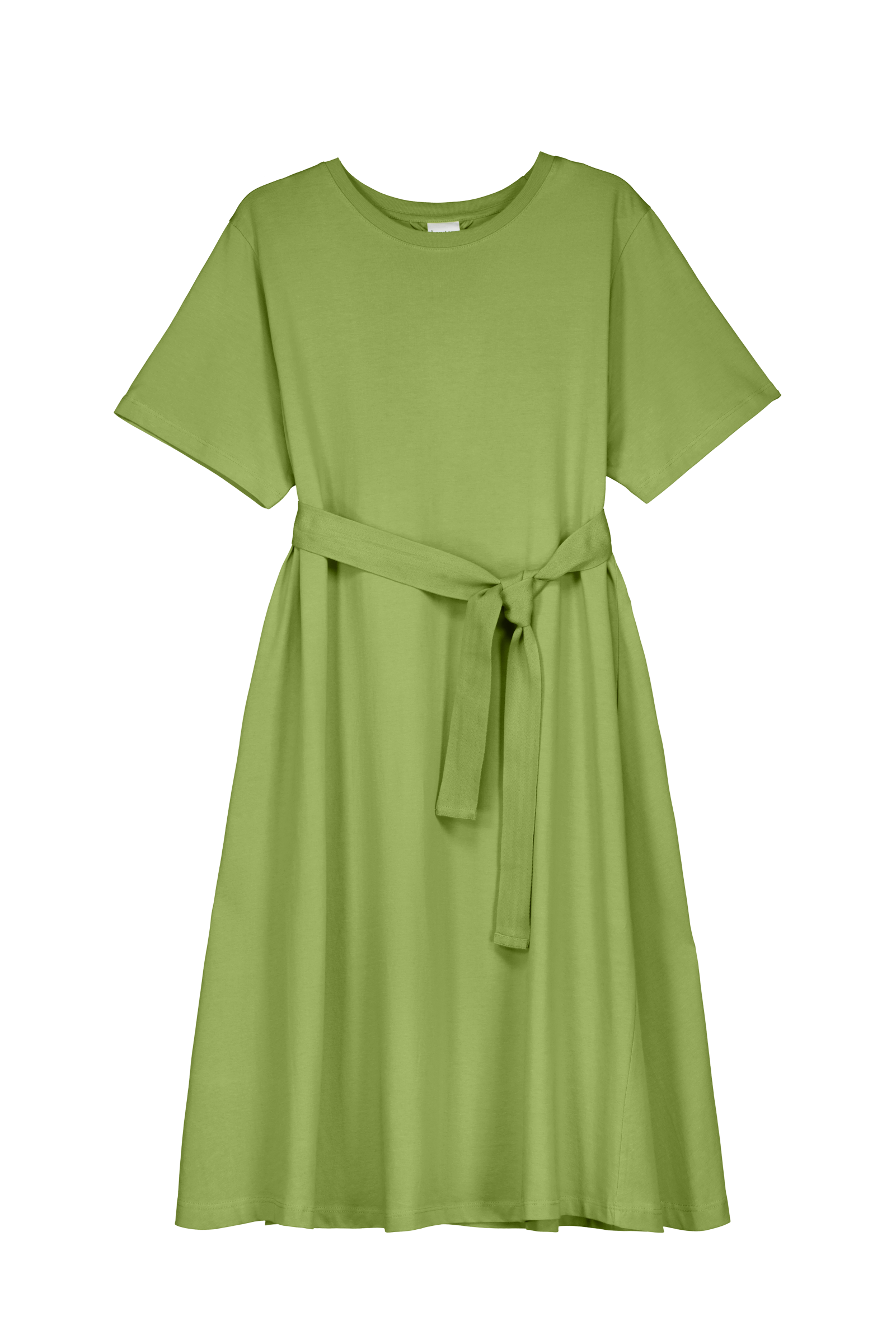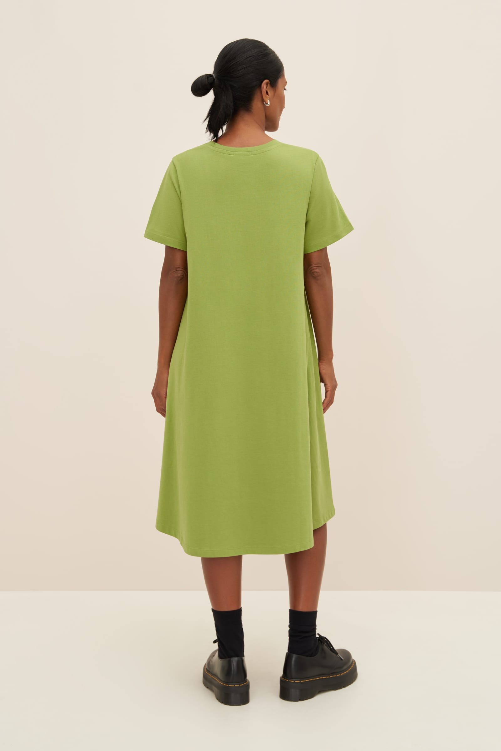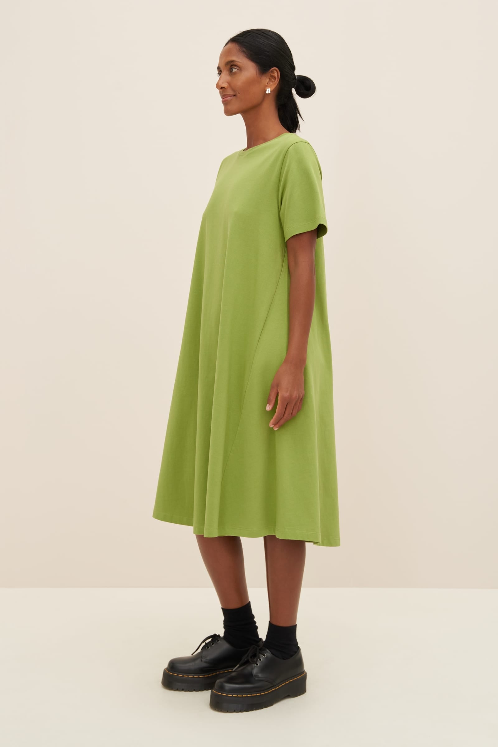The Classic A-Line Tee Dress has a standard fit through the shoulders and falls to a relaxed A-line shape through the body. An effortless slip-on style, it can be worn with an off the body fit or cinched in at the waist with a separate herringbone tie belt. Made from organic cotton in a midweight jersey.