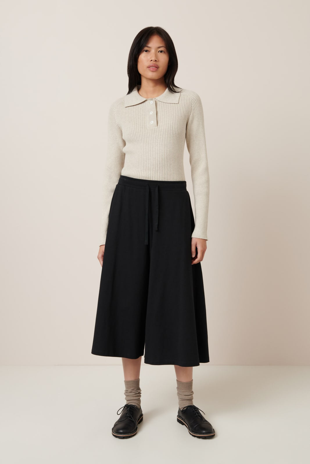 An easy-wear staple, the Daily Culottes are flared through the leg and feature a comfortable elastic waistband with functional drawcord. They sit mid-rise at the waist with a relaxed fit finishing at midi-length. They have a slight drop-crotch, inseam pockets and are made in a midweight organic cotton jersey.