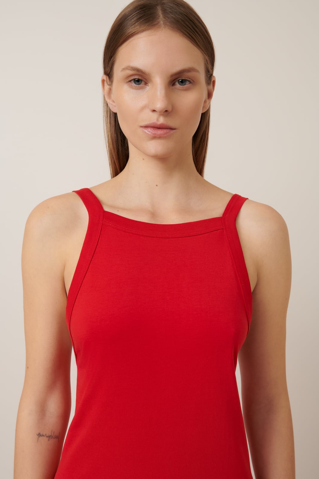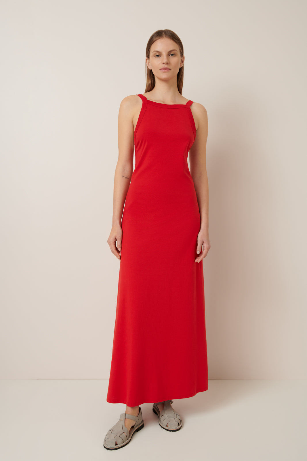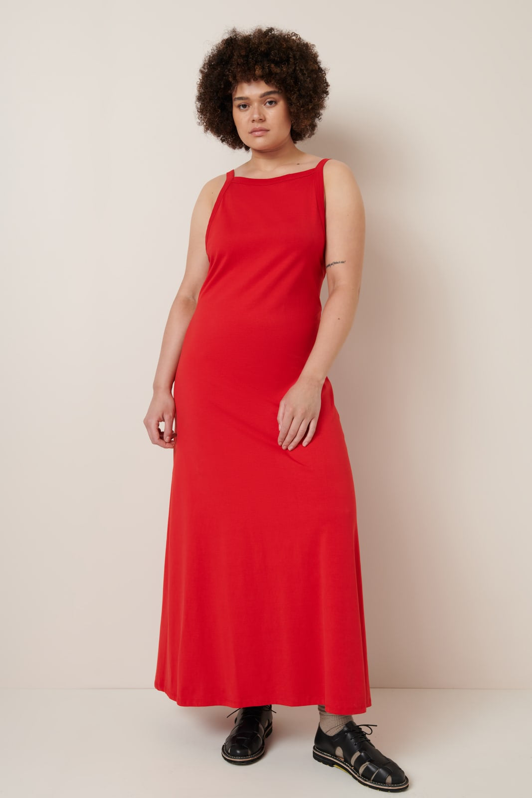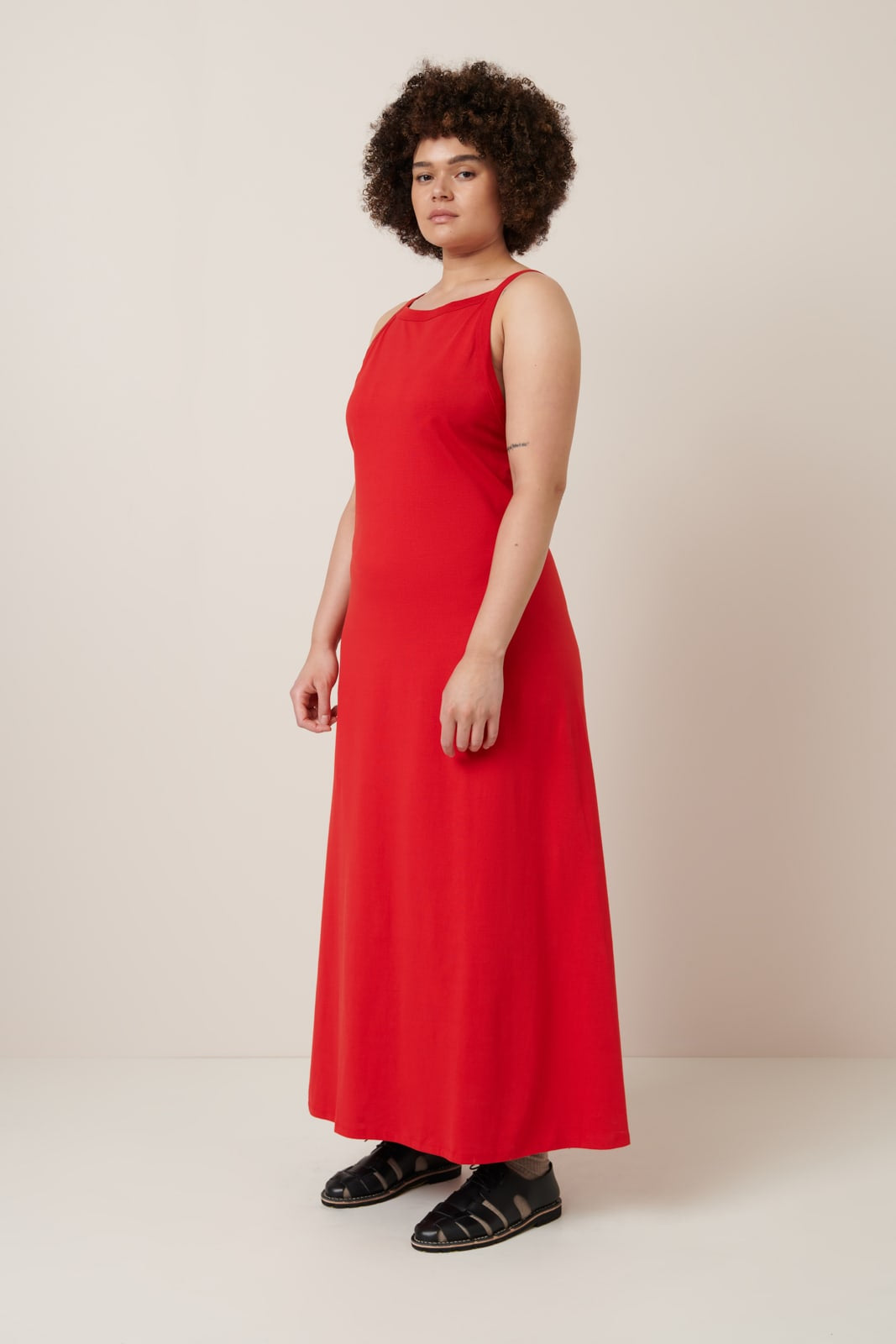 The Low Back Dress is a statement, slip-on style made in midweight organic cotton jersey rib. Designed with a form-hugging, close fit, it features a high neckline and a low square back, falling to a full length skirt. A versatile addition to your wardrobe.