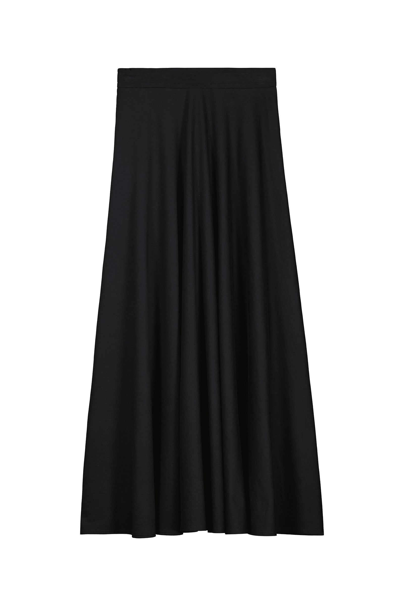 A classic skirt for daily wear, made from midweight organic cotton jersey. The Sphere Skirt has a standard fit, with an elastic waistband and bias cut, A-line skirt. The weight of the fabric gives this ankle length skirt a beautiful drape. Dress up or down with considered separates.