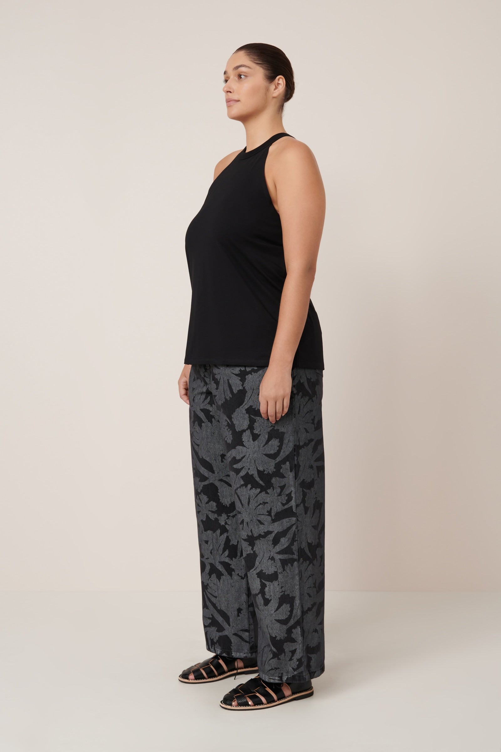 The Surround Top is an elegant singlet featuring a halter neckline and deep-cut armhole. Crafted from a soft midweight organic cotton jersey.