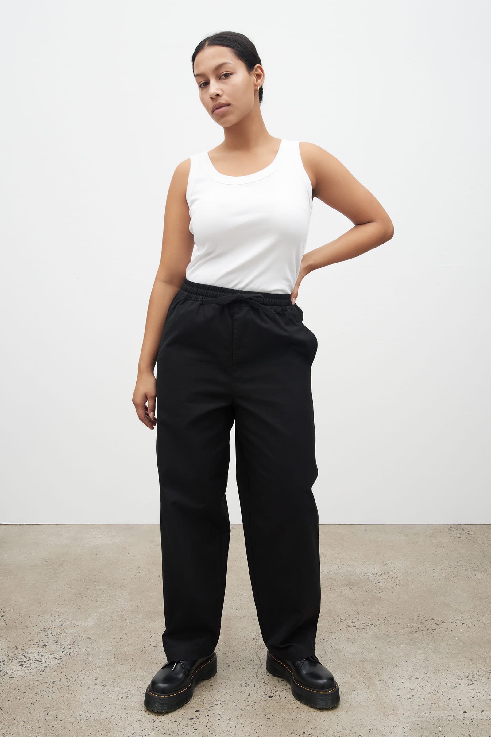 A relaxed track pant style, made from 100% certified Fairtade organic cotton in a lightweight peached woven canvas. The Blake Pant has a slightly tapered leg with a mid-rise waist. The elasticated waistband has a cotton drawstring for ease of wear. It features inseam side pockets and patch pockets at the back.