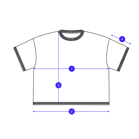 Measured flat across the front of the garment, taken just below the underarm point. This figure has then been doubled to get the full bust measurement.