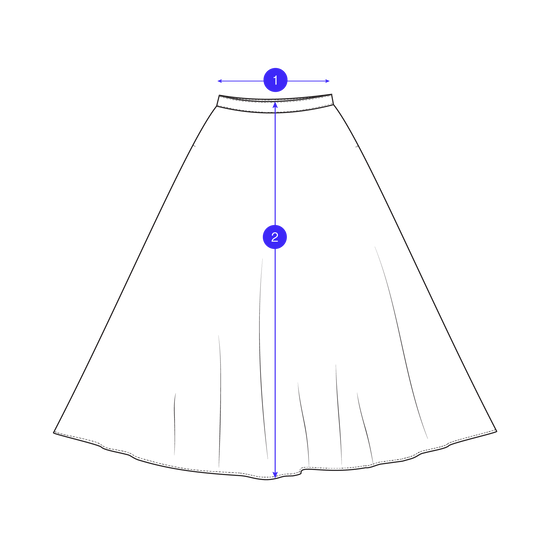These individual product measurements have been taken from the garment pattern. The bust, waist, waistband, hip & hem measurements have been doubled to show the full circumference.