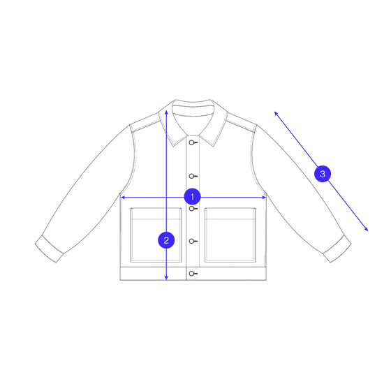 Measured flat across the front of the garment, taken just below the underarm point. This figure has then been doubled to get the full chest measurement.