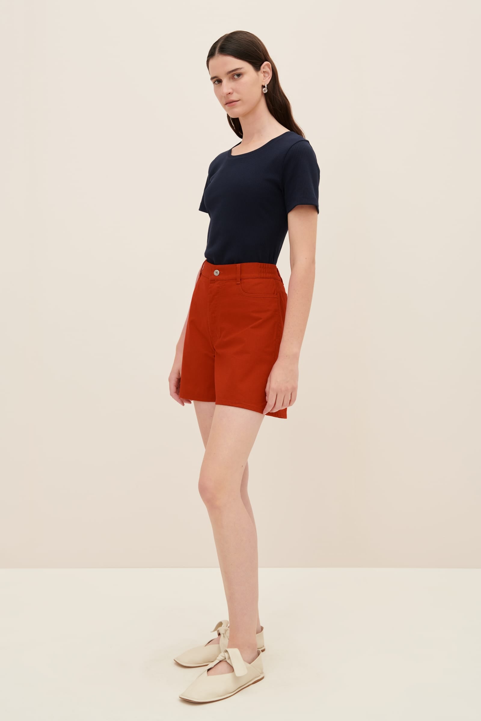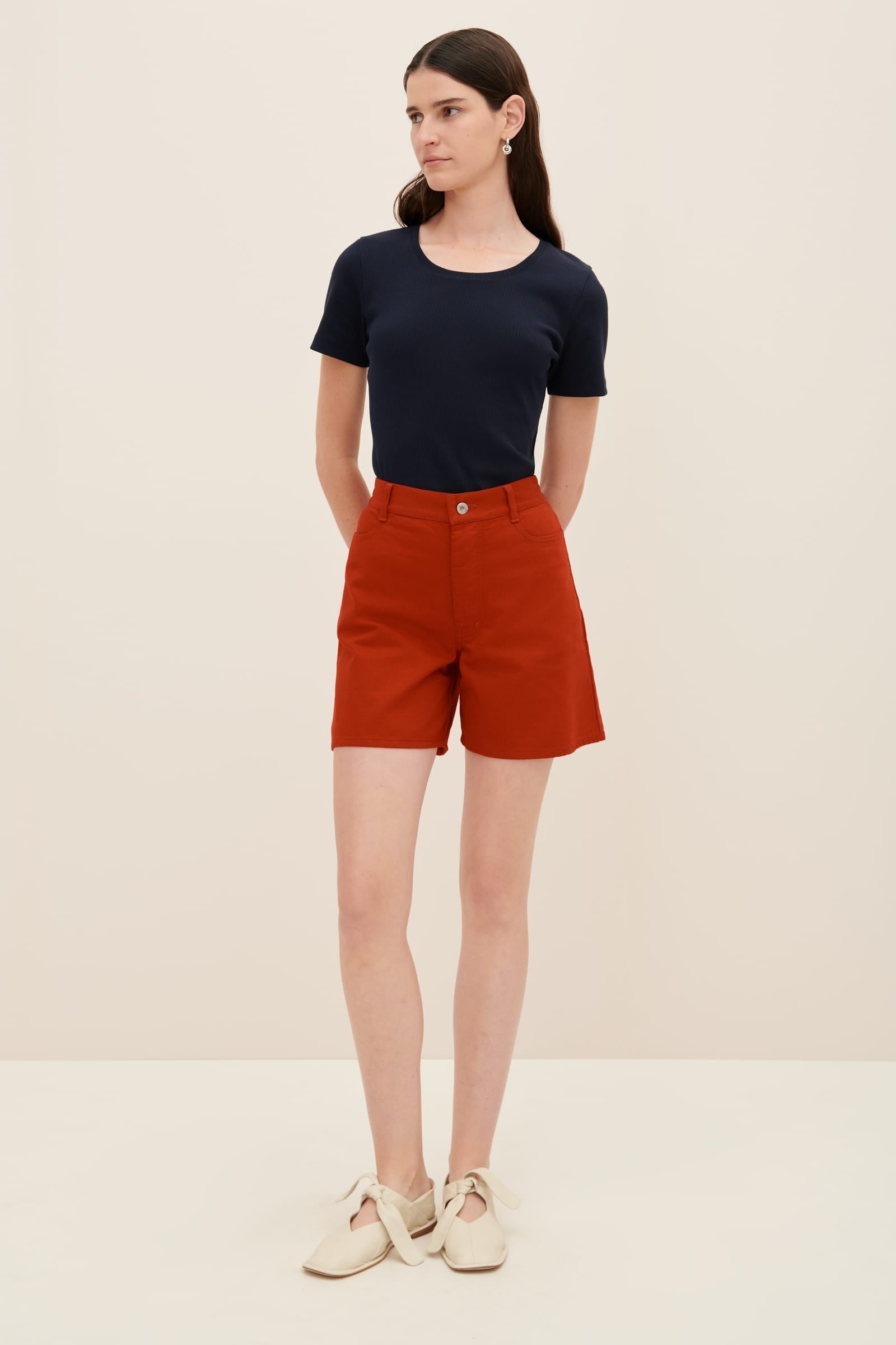 The Eddy Shorts are a neater iteration of our best-selling Outline Shorts. They have a standard fit and feature a mid-rise, partially elasticated waist. They have pockets at the front and back, and a button-up fly with nickel-free tacks. Made from lightweight organic cotton denim that utilises a repurposed fabric.