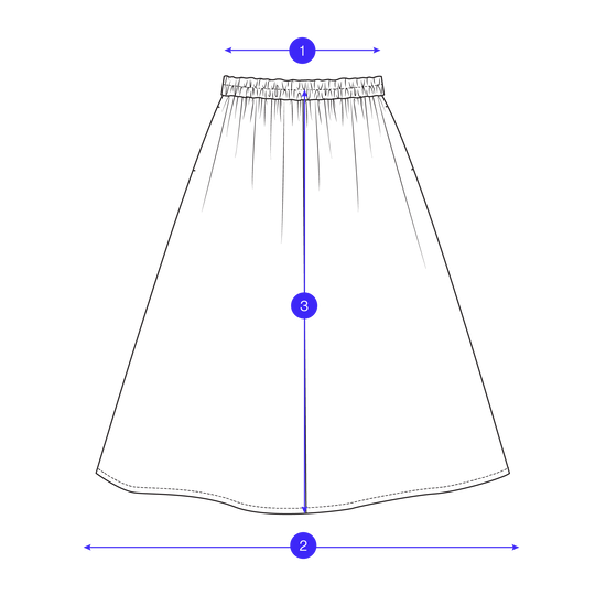 These individual product measurements have been taken from the garment pattern. The bust, waist, waistband, hip & hem measurements have been doubled to show the full circumference.