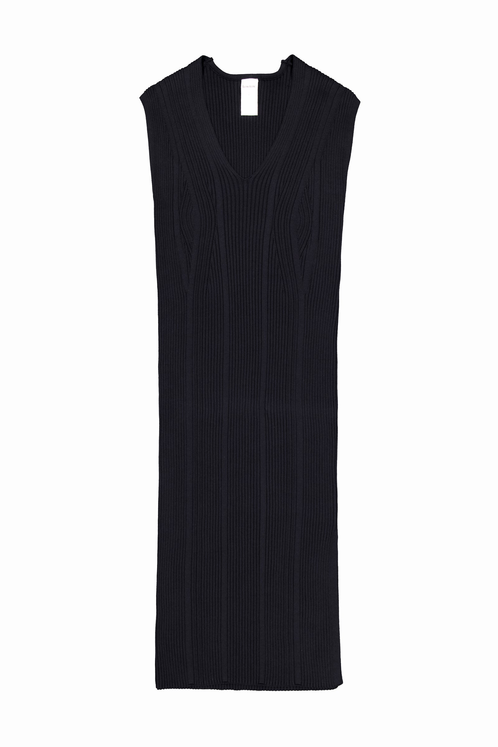 The Parallel Dress is a ribbed, knit style with a flattering deep v-neck and a close fitting silhouette. Crafted form organic cotton and knit in a rib stitch, it offers vertical texture and a streamlined look. Falling to a midi length, the dress is finished with side splits for added movement.