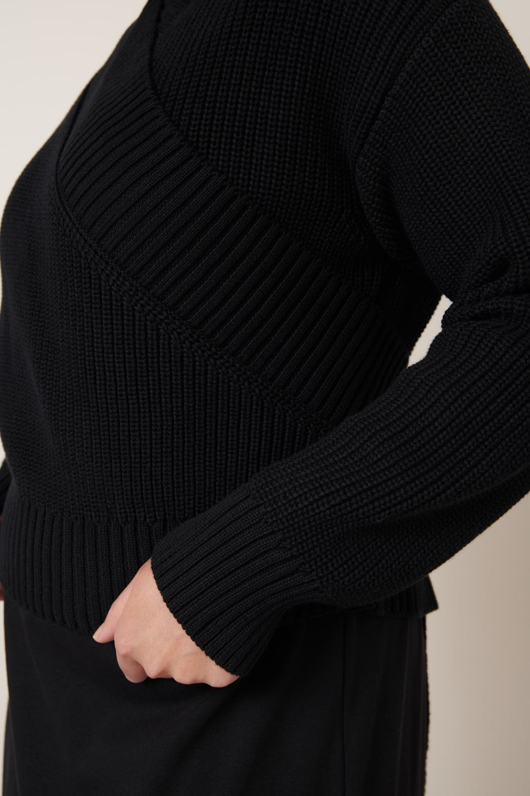 A wrap style cardigan, made from organic cotton and knit in a thick tuck stitch. The Unity Cardigan has a standard fit through the body and is slightly cropped in length. It features a high neckline and is finished with wide rib detailing through the cuffs and hem. Great for layering over your favourite dress or a pair of jeans.