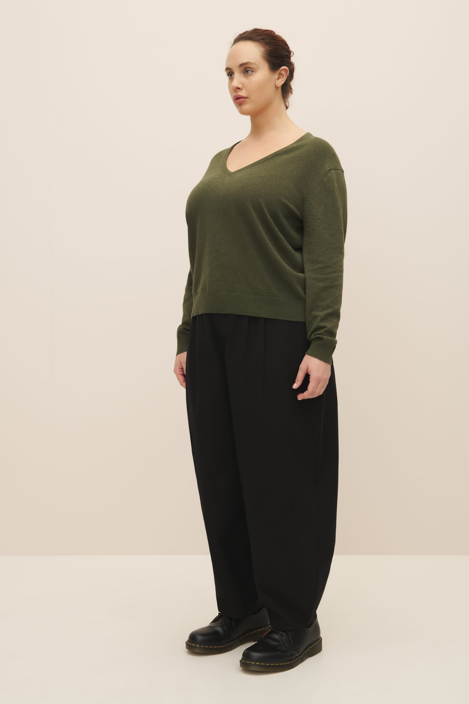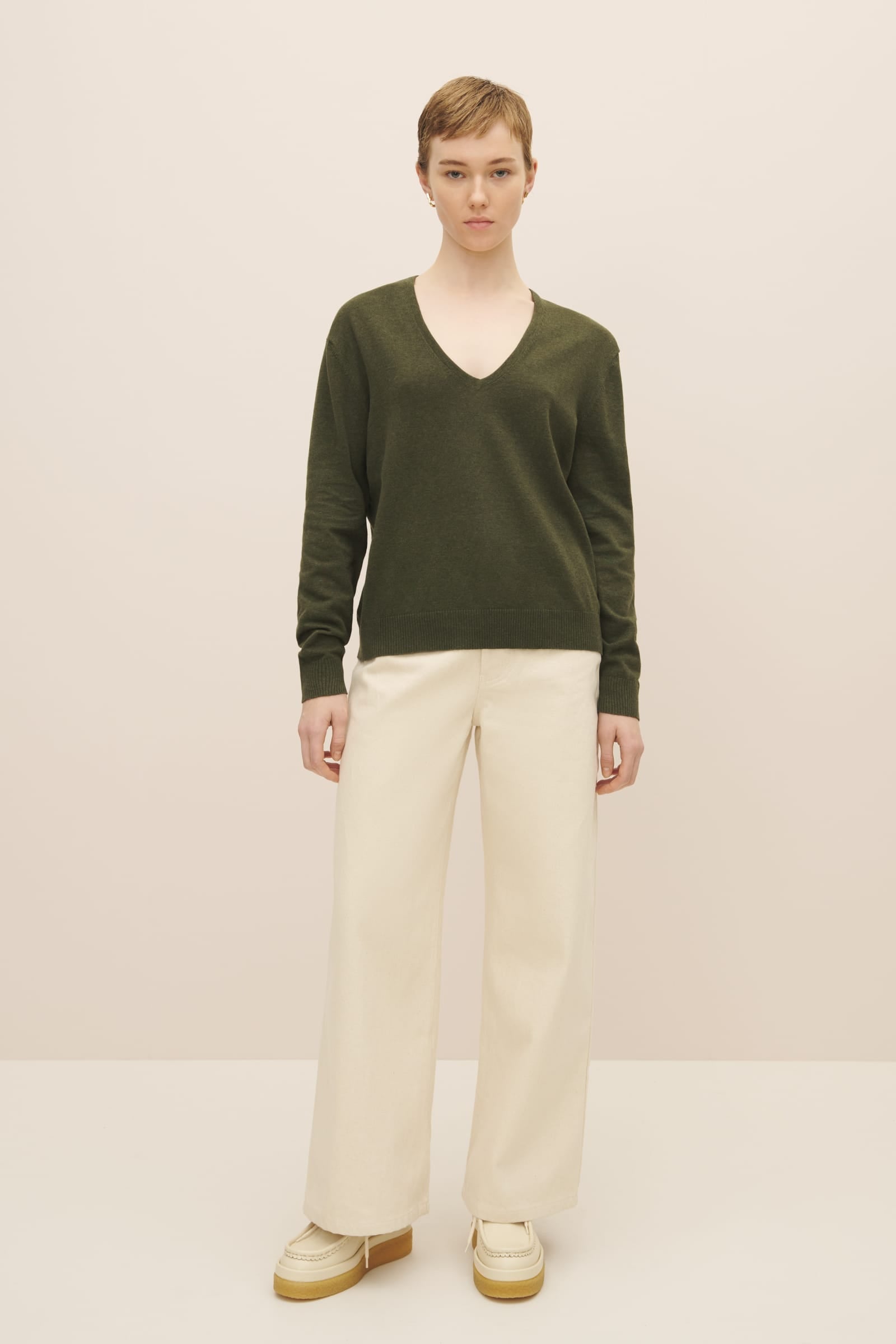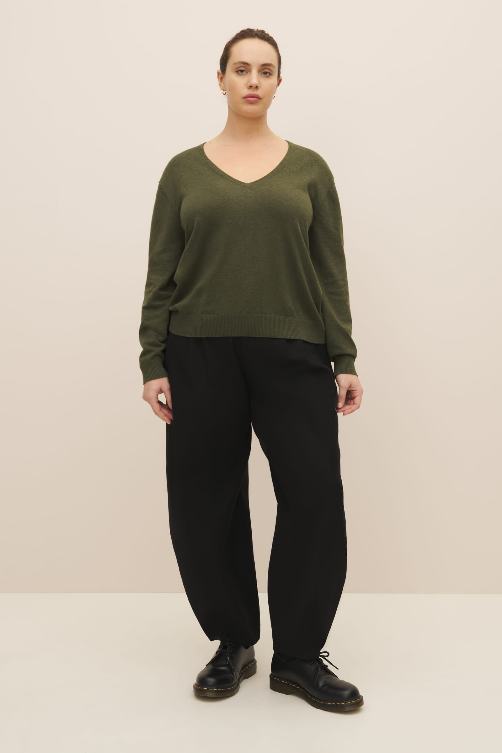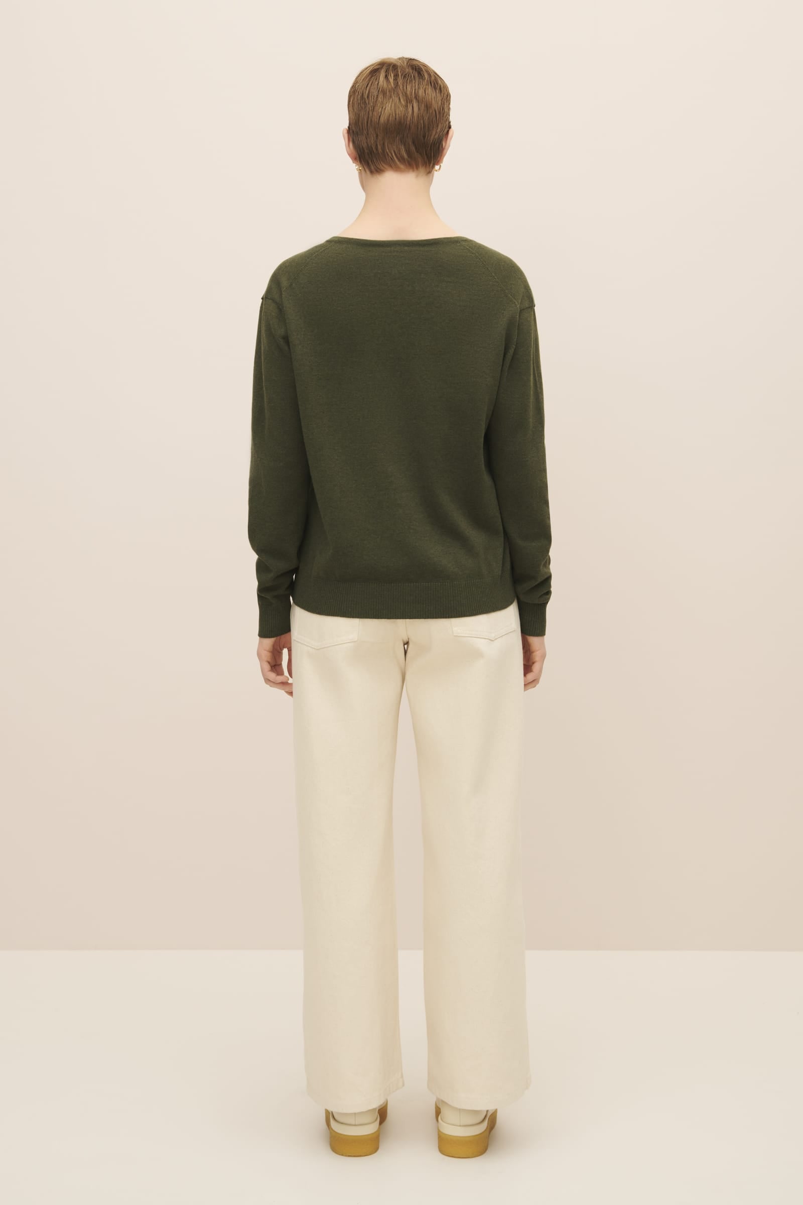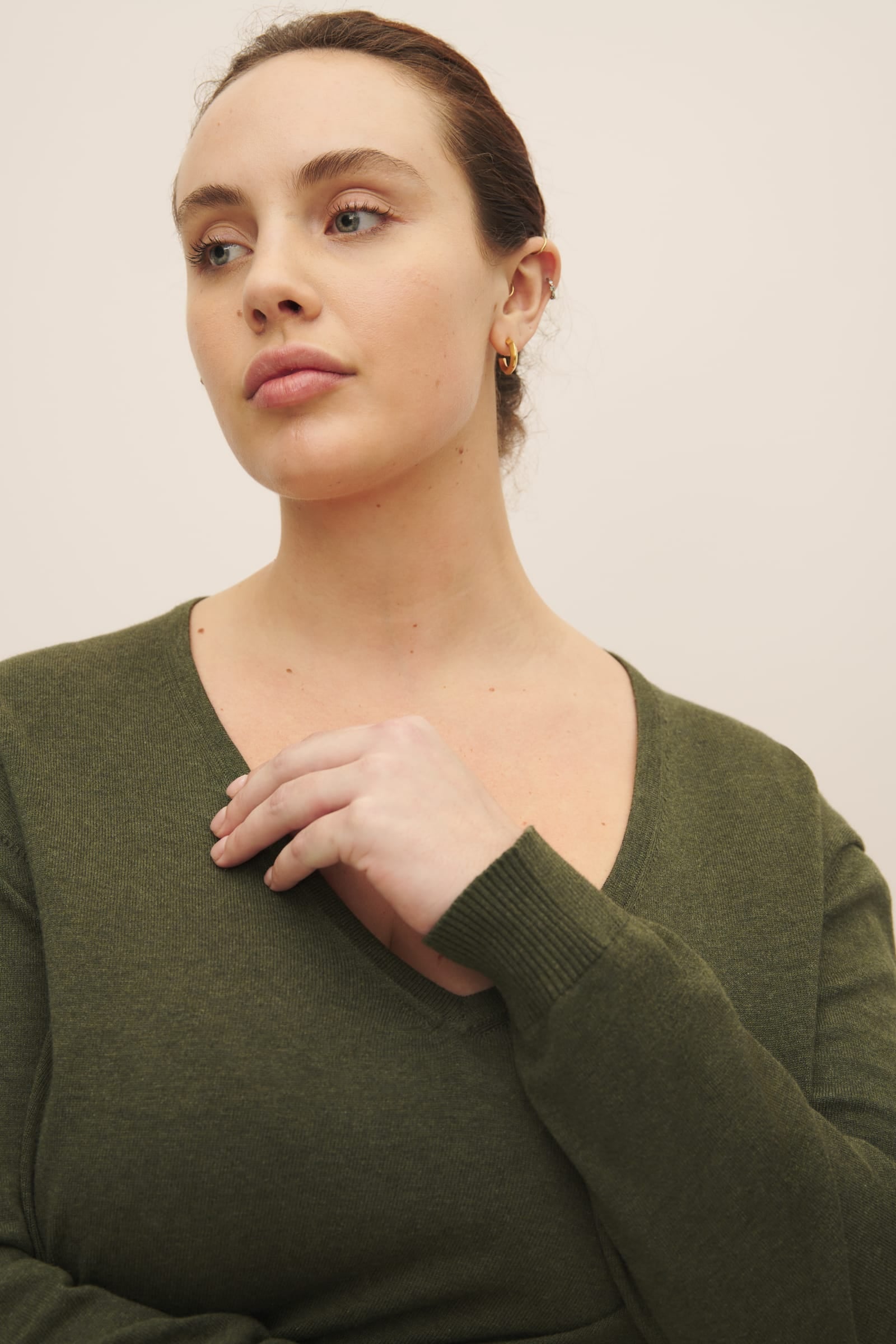 An everyday staple perfect for layering, made from 100% certified Fairtrade organic cotton single jersey. The Vale Jumper is a lightweight knit with a relaxed fit through the body and sleeve, and a V neckline. It features rib at the cuff and hem.