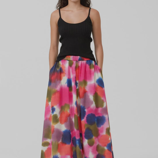 The Muse Skirt is a statement style, crafted from lightweight organic cotton voile featuring our handpainted Watercolour print. The gathered style offers beautiful movement while the relaxed fit is complemented by the elasticated high-rise waist for added comfort.