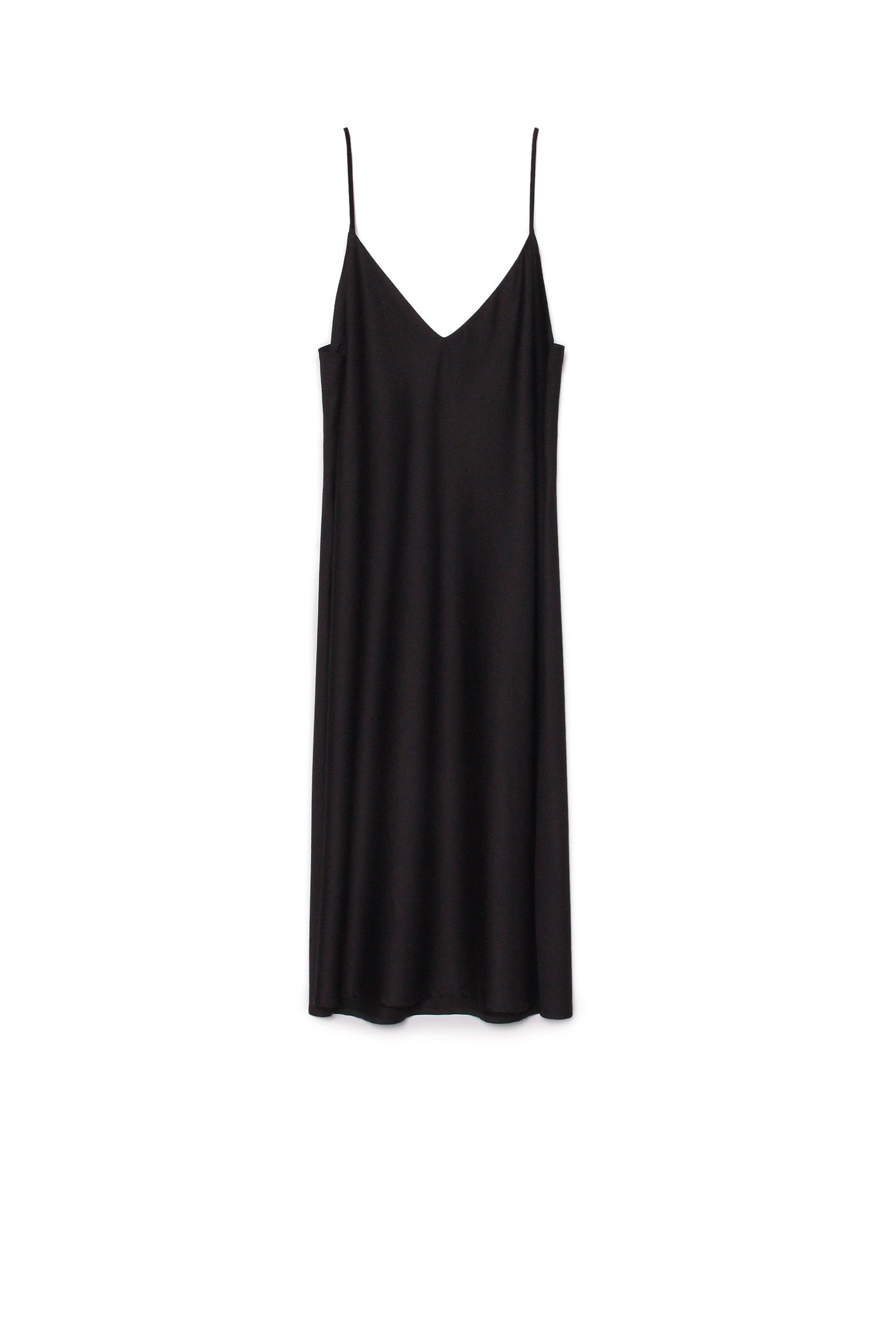 A bias cut slip dress with a v neck and thin adjustable shoulder straps. Made from a lightweight organic cotton tencel blend, which allows the dress to drape beautifully along the body.
