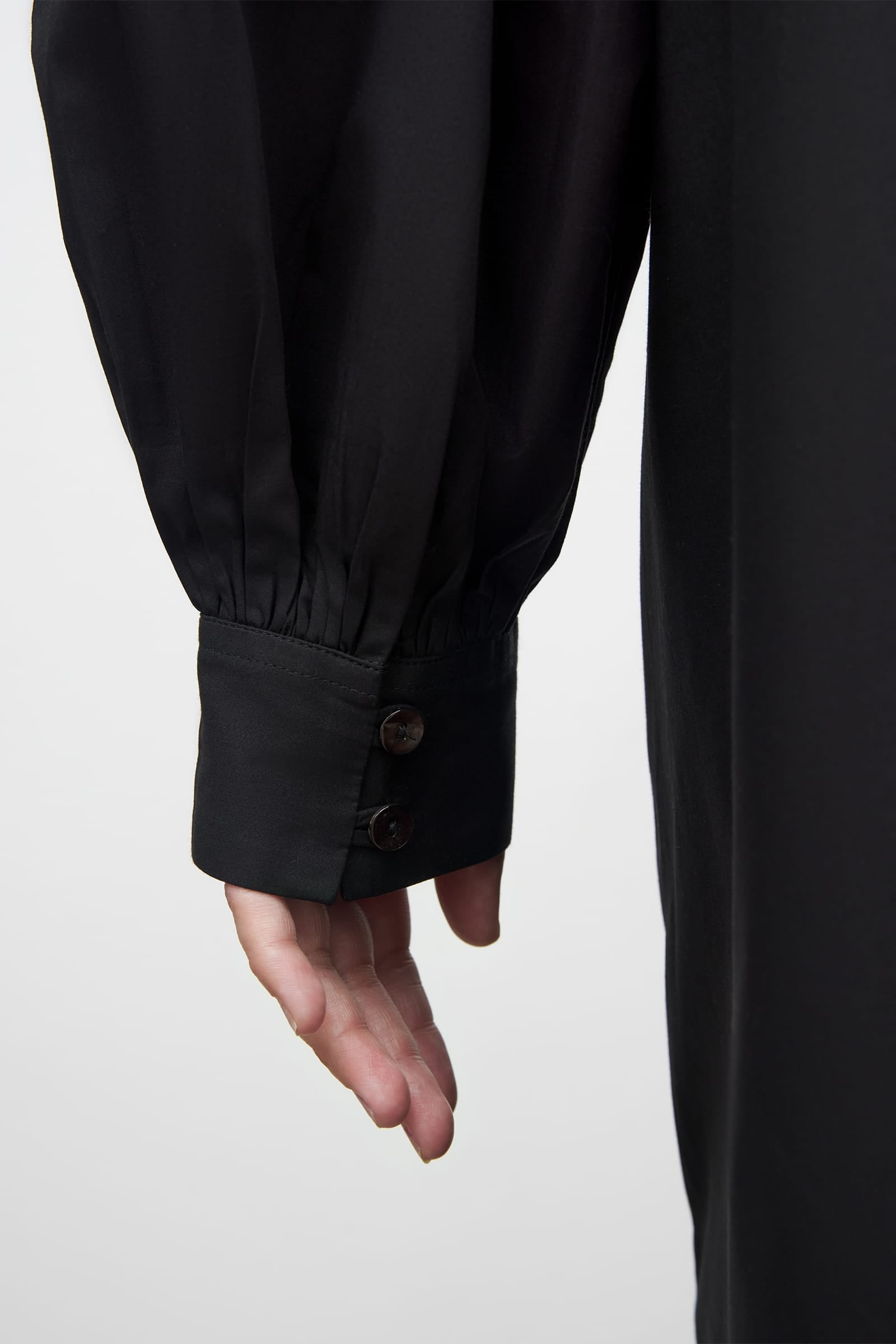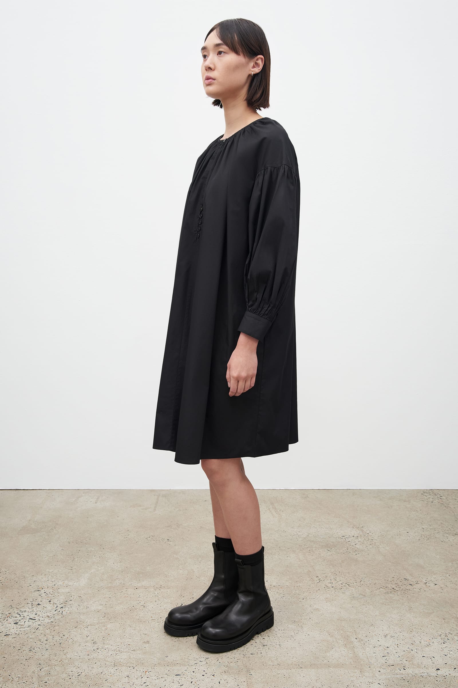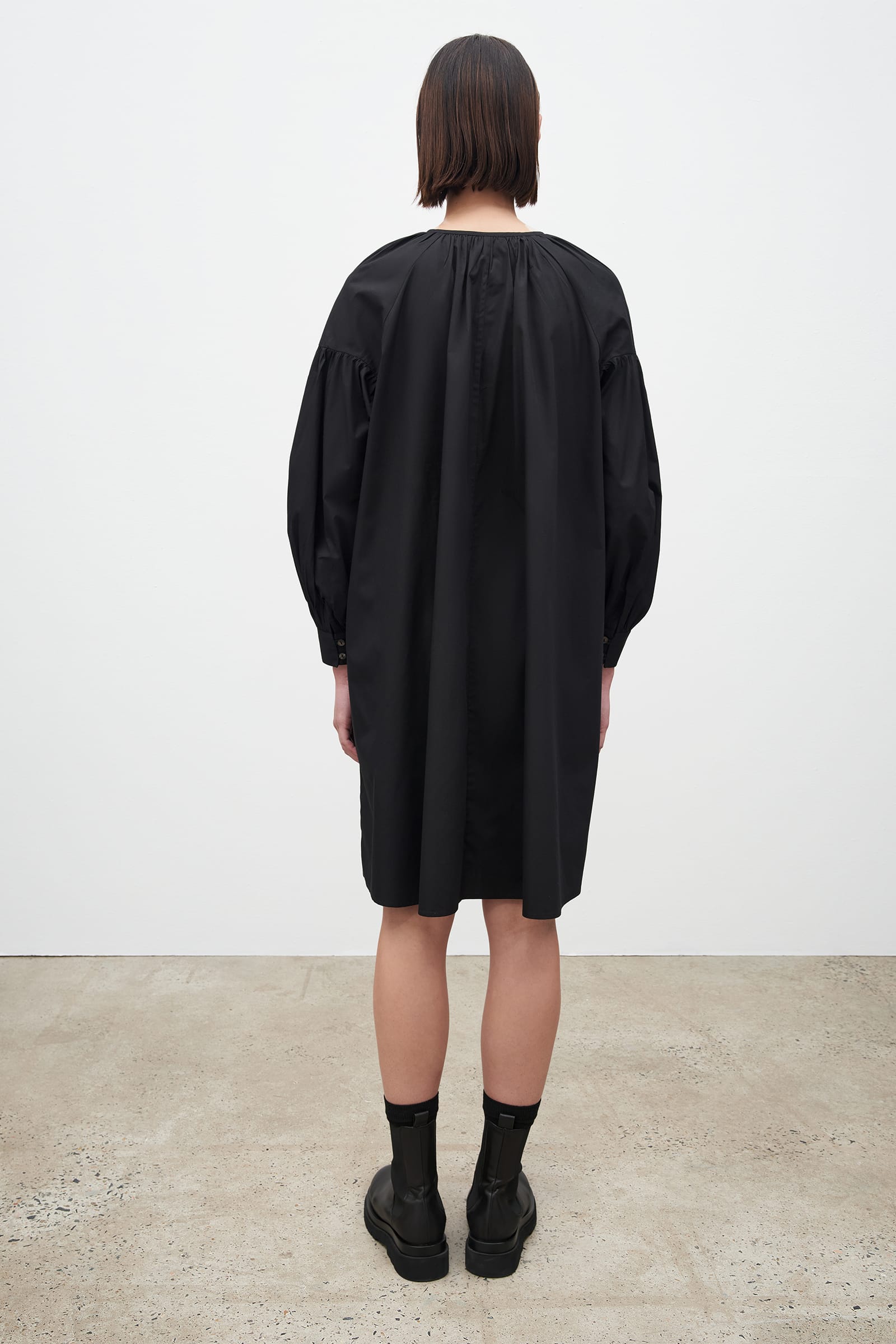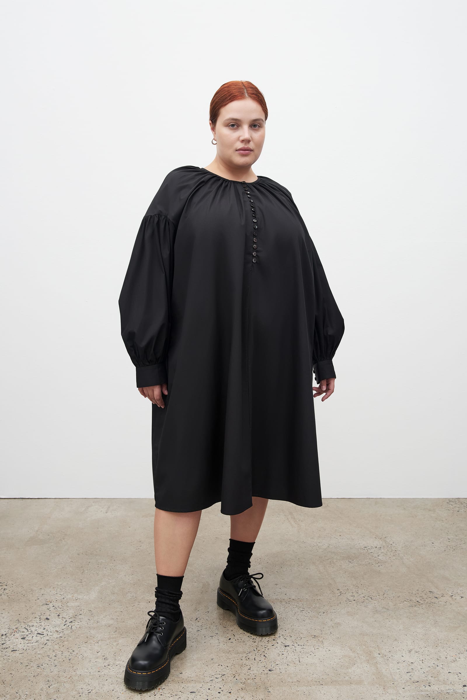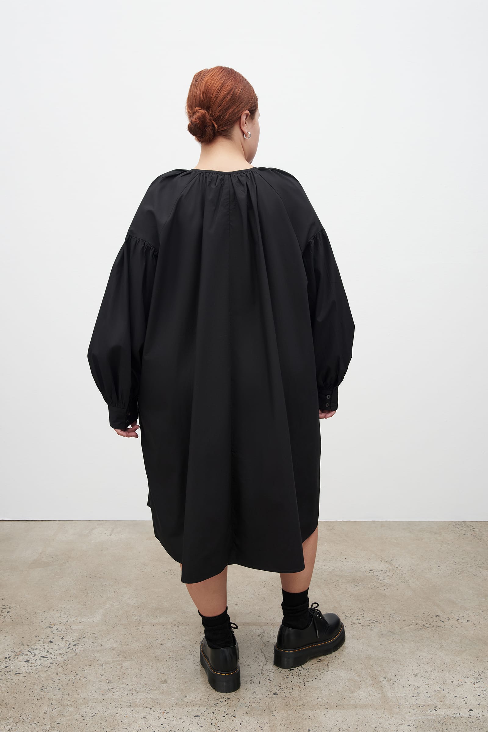 The Elliot Dress is detailed with iridescent shell buttons at the centre front and cuffs, which fasten with loop closures. An elevated, oversized style, that features gathers through the body, and full-length gathered sleeves. Inseam pockets add to the ease of wear. Made from 100% certified Fairtrade organic cotton in a crisp poplin.