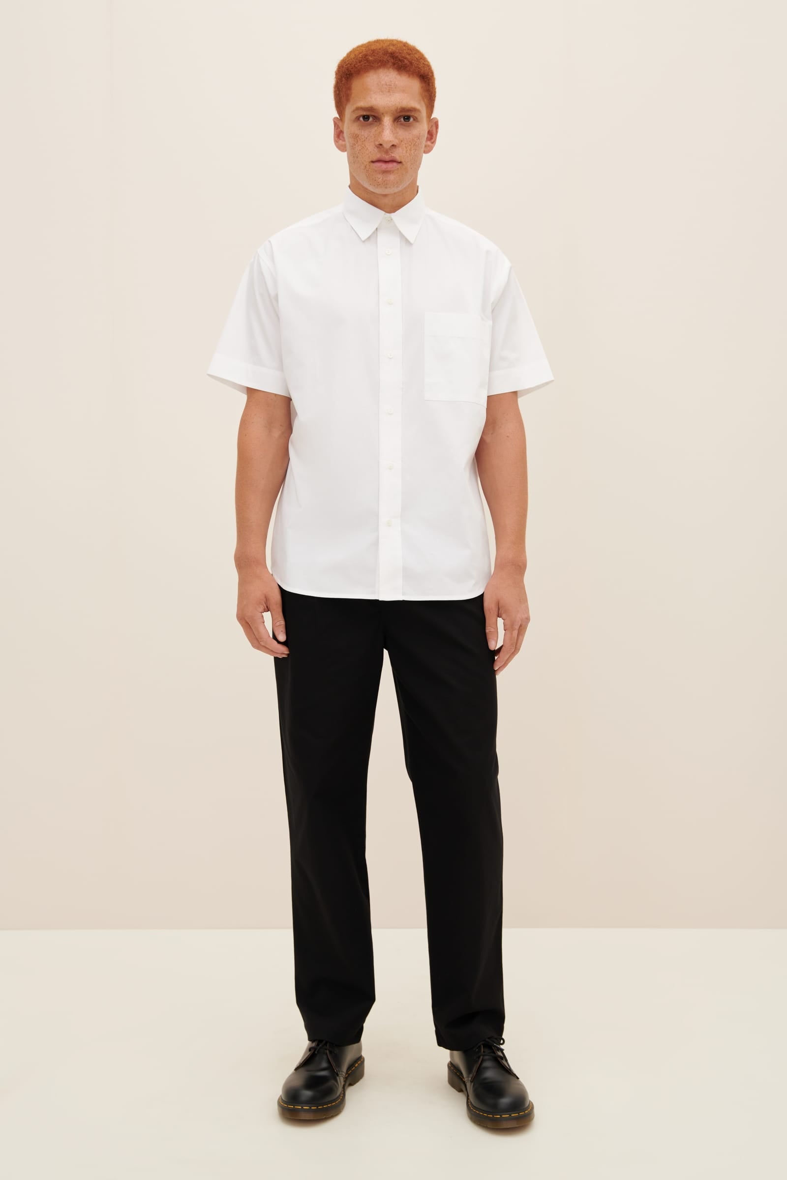 The Mani Shirt is an effortless way to add an artful touch to everyday dressing. Designed for an oversized fit, it is detailed with a front patch pocket and finished with shell buttons. Made from organic cotton in a poplin.
