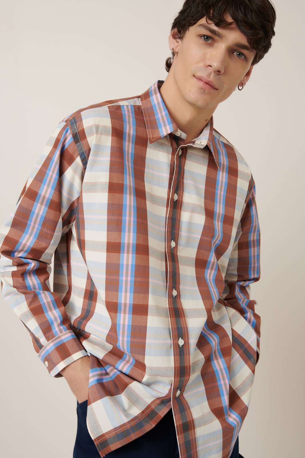 A traditional menswear shirt finished with a classic shirt collar and buttoned cuffs.