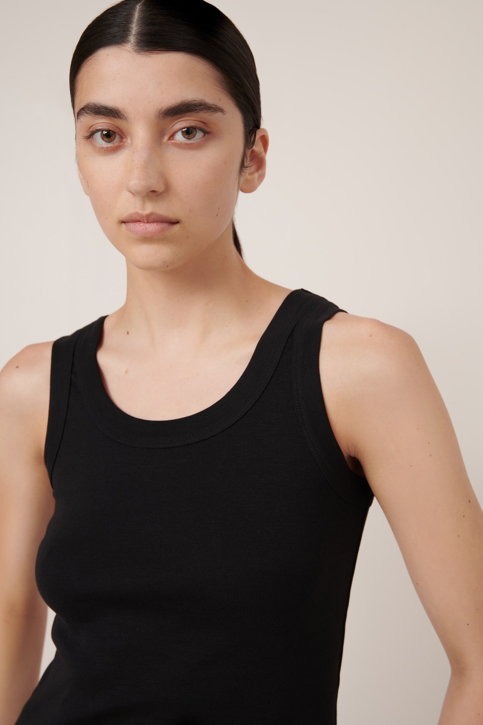 Elevate your everyday style with the ribbed Everyday Singlet. Designed for daily wear, this singlet has a flattering close fit and features a wide scoop neckline at the front and back. Finished with ribbing around the neck and armholes, its made from soft organic cotton jersey for complete comfort.