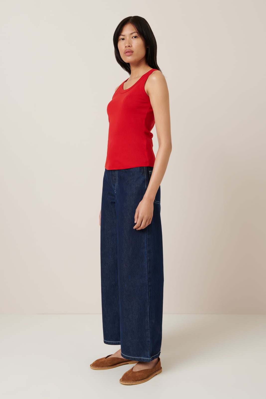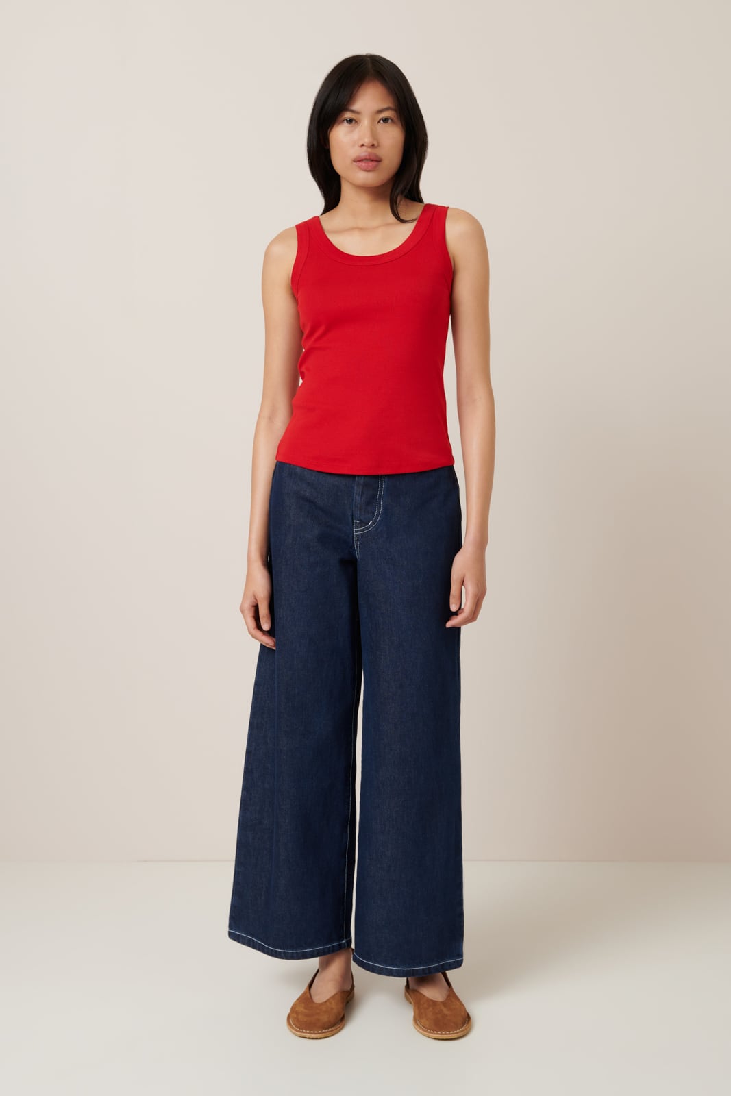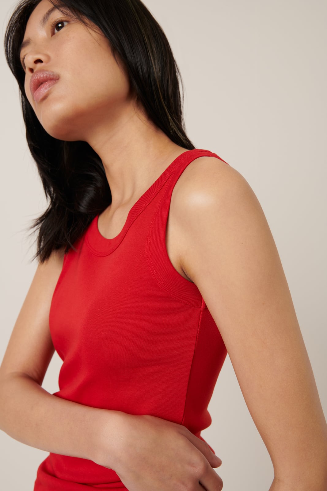 Elevate your everyday style with the ribbed Everyday Singlet. Designed for daily wear, this singlet has a flattering close fit and features a wide scoop neckline at the front and back. Finished with ribbing around the neck and armholes, its made from soft organic cotton jersey for complete comfort.
