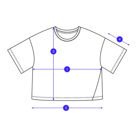 Measured flat across the front of the garment, taken just below the underarm point. This figure has then been doubled to get the full bust measurement.