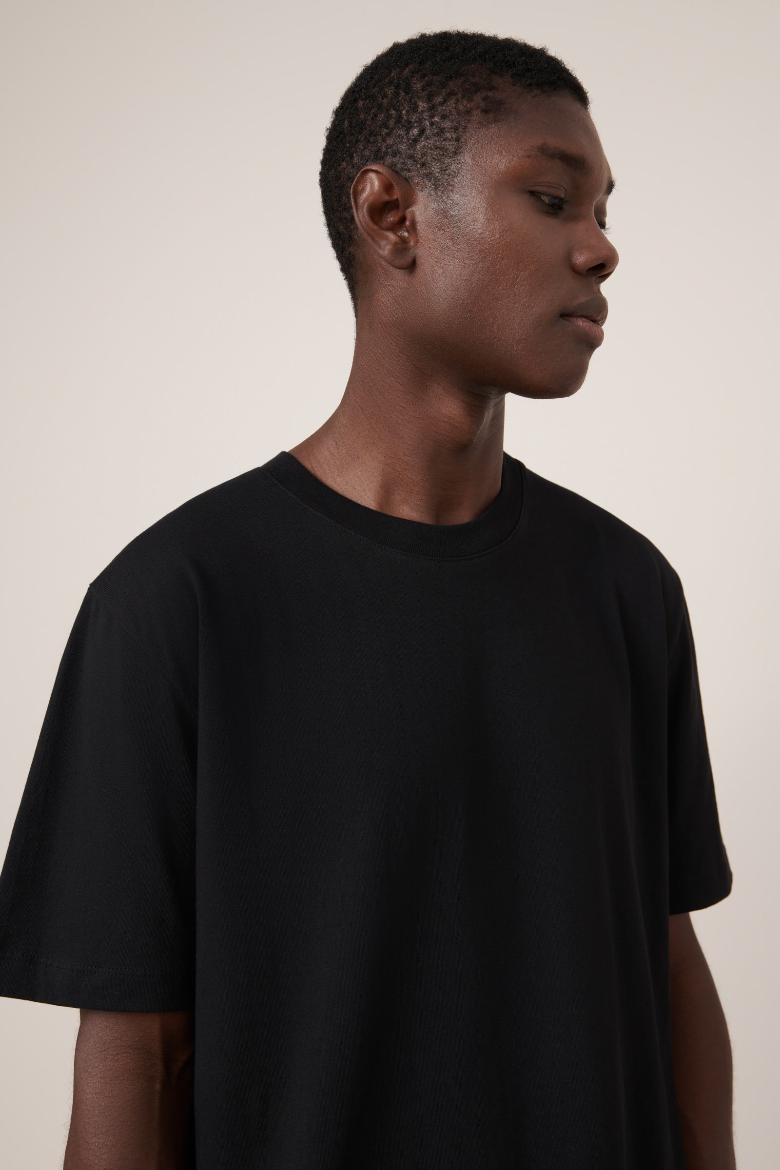 A staple silhouette for any wardrobe. The Staple Tee has a ribbed crew neck and is longer through the body with a standard fit. Made from a midweight organic cotton.