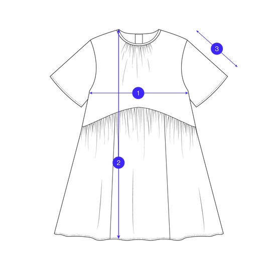 An easy everyday dress, made from 100% certified Fairtrade lightweight organic cotton voile in our Komorebi Print. The Agnes Dress has an oversized fit and falls to a midi length. It features gathers at the neckline and waist, and drop shoulders with short flared sleeves. Fastens with agoya shell buttons at the centre back.