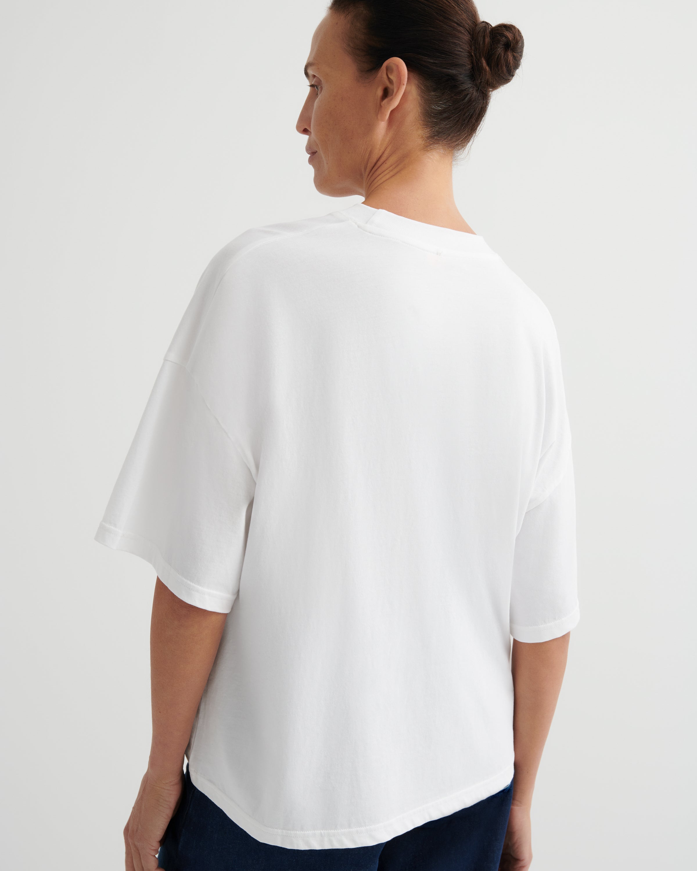 A digitally printed tee designed for an oversized, off the body fit and finished with a classic crew neckline. Made from midweight organic cotton jersey.