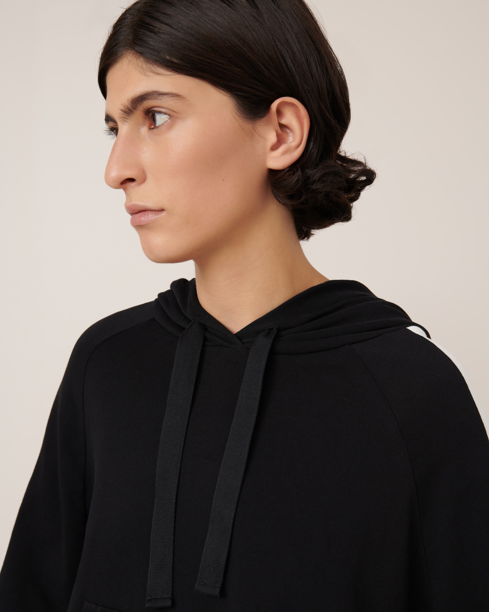 The Contrast Hoodie offers an oversized fit and is detailed with an exaggerated contrast greige stripe down the sleeves. Crafted from heavyweight organic cotton jersey, it features raglan sleeves, a functional drawcord through the hood and a front patch pocket. Wear on its own or pair with the Contrast Trackpant.