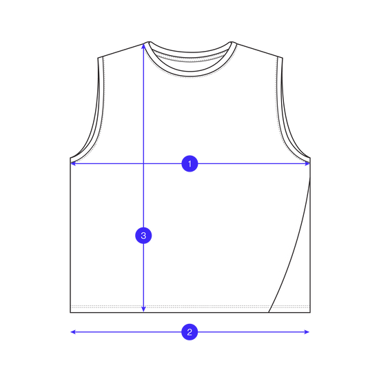 Measured flat across the front of the garment, taken just below the underarm point. This figure has then been doubled to get the full bust measurement.