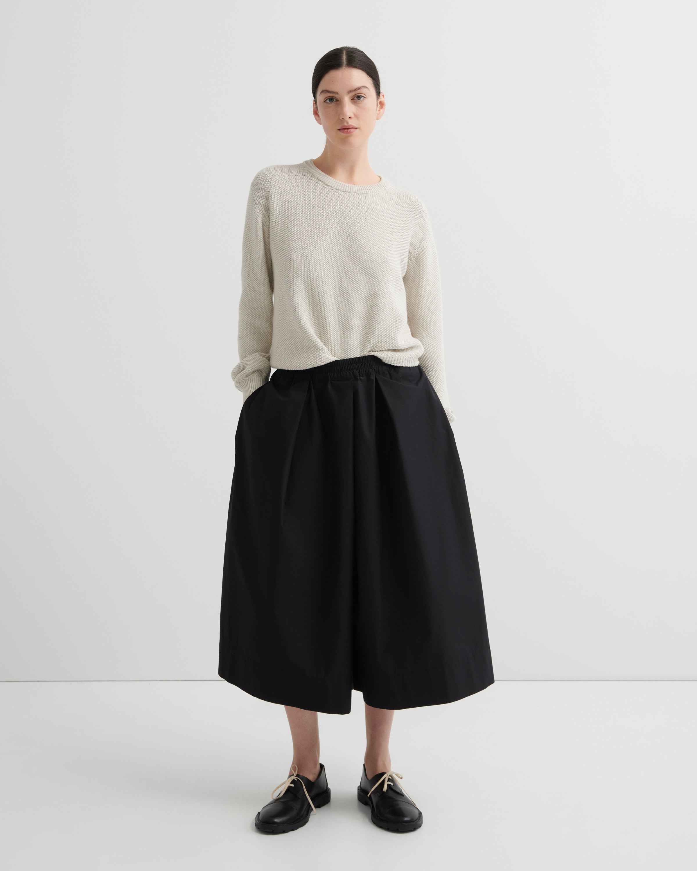 Designed for ease and style, featuring a pleated, wide-leg silhouette with a pull-on fit. Finished with a wide elastic waistband and side seam pockets, they offer effortless comfort without compromising on polish.