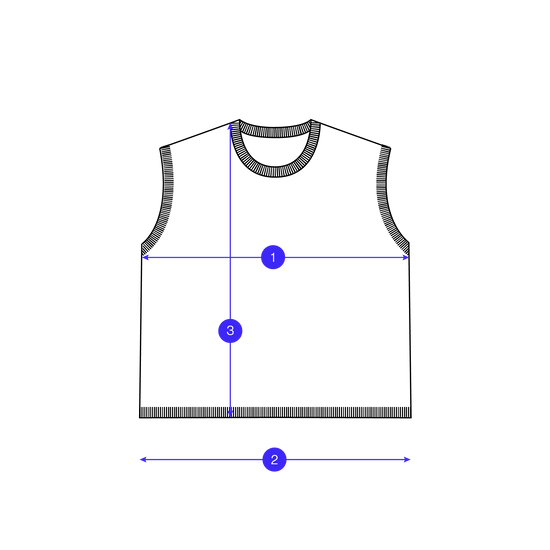Measured flat across the front of the garment, taken just below the underarm point. This figure has then been doubled to get the full bust measurement.