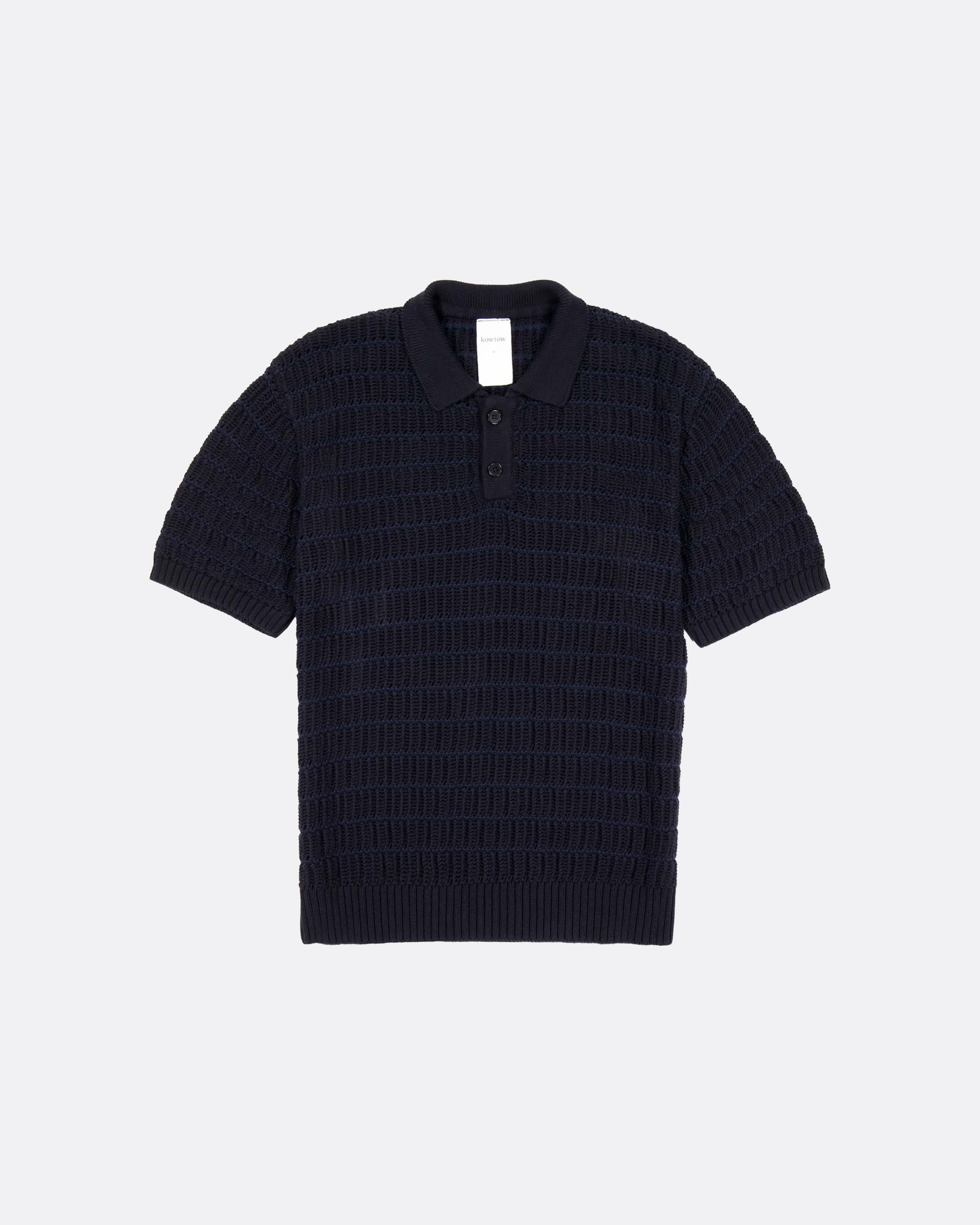 A fresh take on the traditional polo, the Midnight Polo is defined by its textural knit, inspired by vintage handknit techniques.