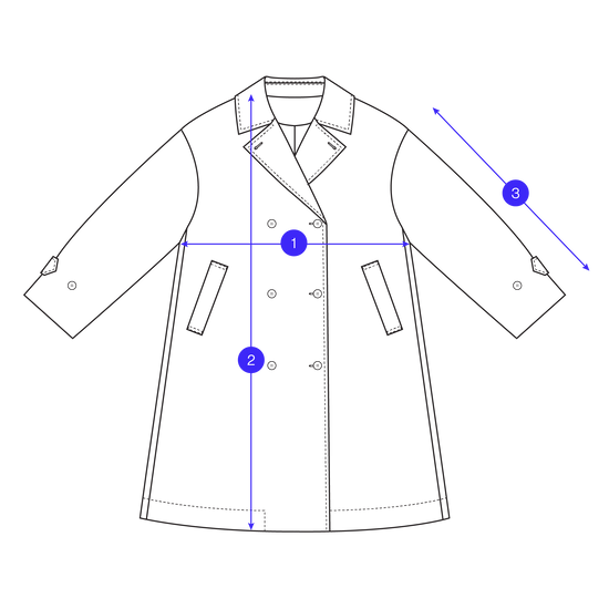 An iteration of the classic trench, made from organic cotton chino drill and fully lined. The Mile Trench is an oversized style with a double breasted Tagua nut button closure. It has dropped shoulders and adjustable straps at the wrist, and angled welt pockets at the sides. This style has unique sizing, please refer to our size and fit tab below for more information.