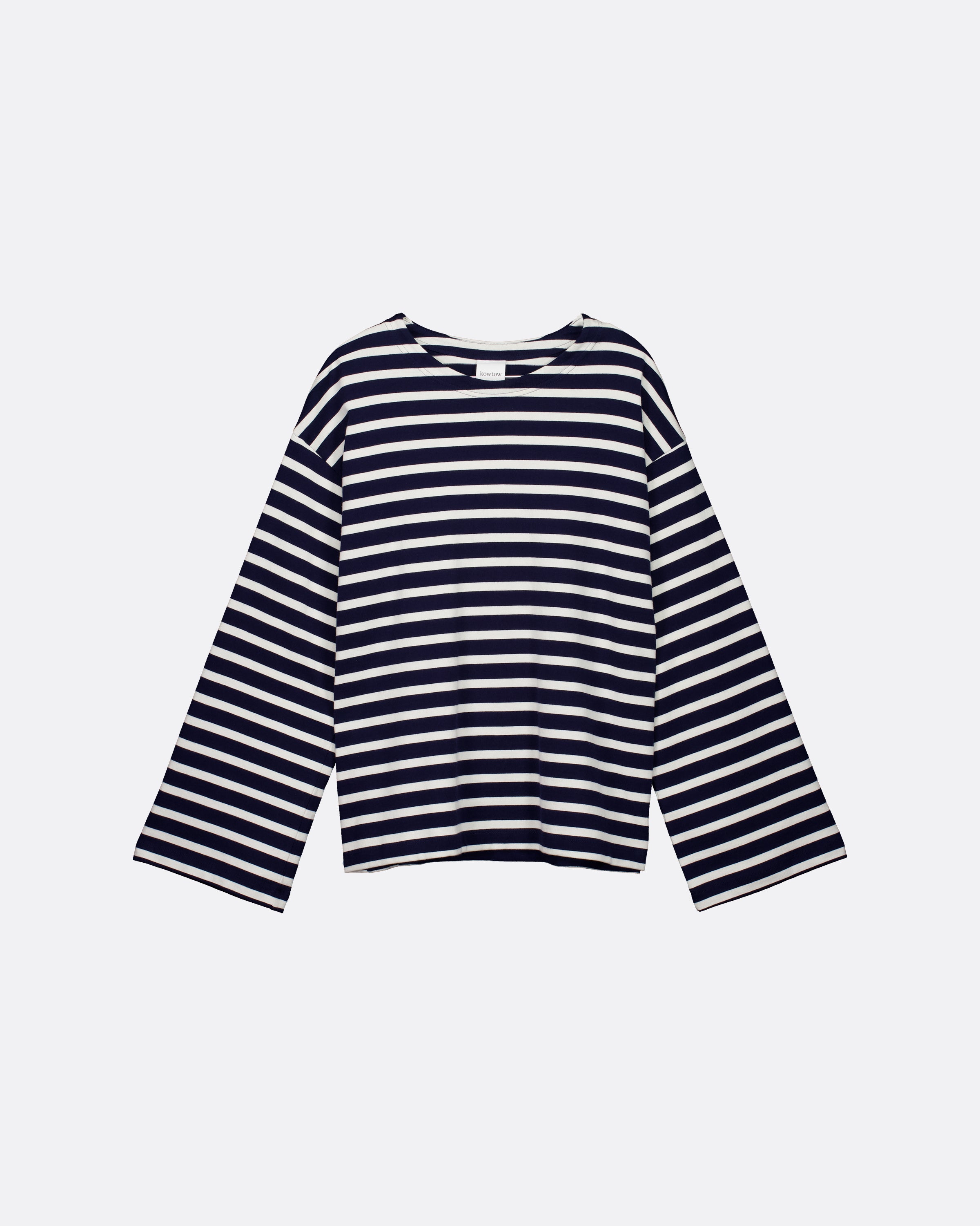 Designed for ease and everyday wear, the Pierre Tee has a boxy fit with long, wide sleeves. Crafted from soft cotton jersey in our Uniform Stripe - a combination of navy and off white.
