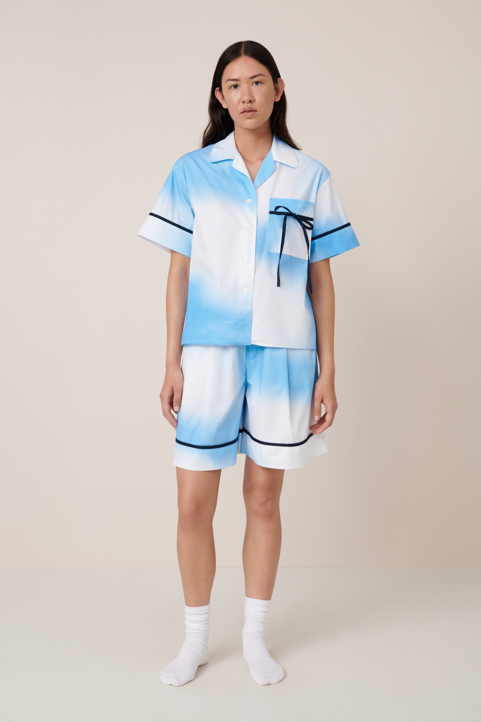 The Pyjama Set 06 brings a playful touch to classic sleepwear. Crafted from repurposed organic cotton poplin in our archive cloud print, the set features traditional contrast binding and a relaxed fit for timeless comfort. The top fastens with shell buttons, while the shorts feature a comfortable elastic waistband for ease of wear. Complete with a reusable drawstring bag for convenient storage or gifting.