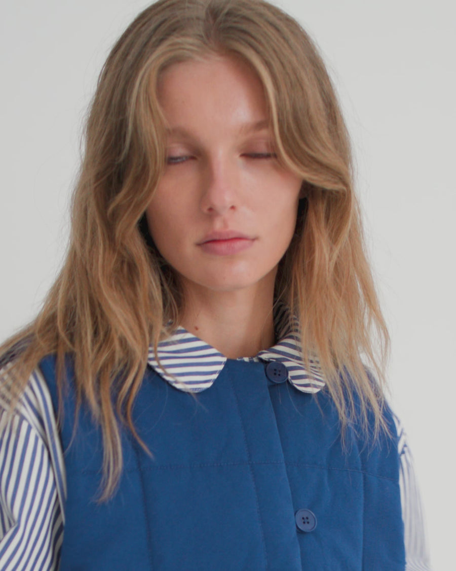 Designed for layering, the Studio Vest has a relaxed, slightly cropped fit and fastens at the front with rouille loops and nut buttons. Finished with a contrast cream lining and two internal pockets for added functionality.